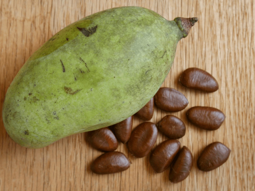 The fruit should be ripe. You will know its ripe when the fruit is slightly soft to the touch and gives off a nice banana/mango-y aroma. Next, the peel should be removed since it is slightly bitter. Mind the large seeds! For cooking/baking, a good general rule of thumb is to substitute the pawpaw for the banana in many popular recipes. Back to Top